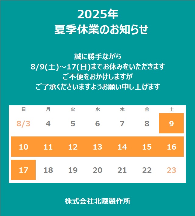 休業期間:2025年8月9日(土)~8月17日(日)